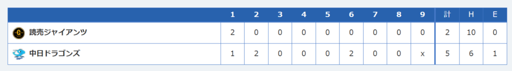 試合結果: 中日ドラゴンズ 5 – 2 読売ジャイアンツ